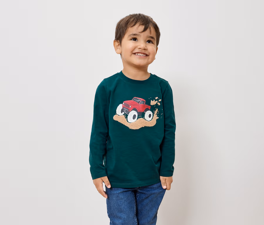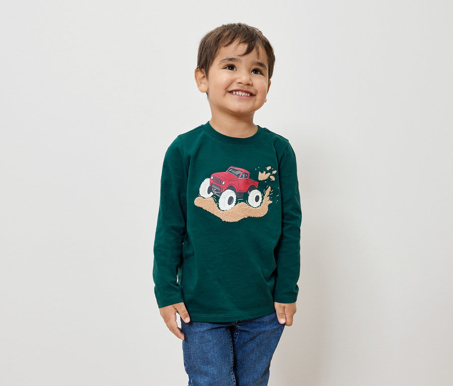 - 1x tmavě zelená s aplikací autíčka, 1x proužky v různých barvách