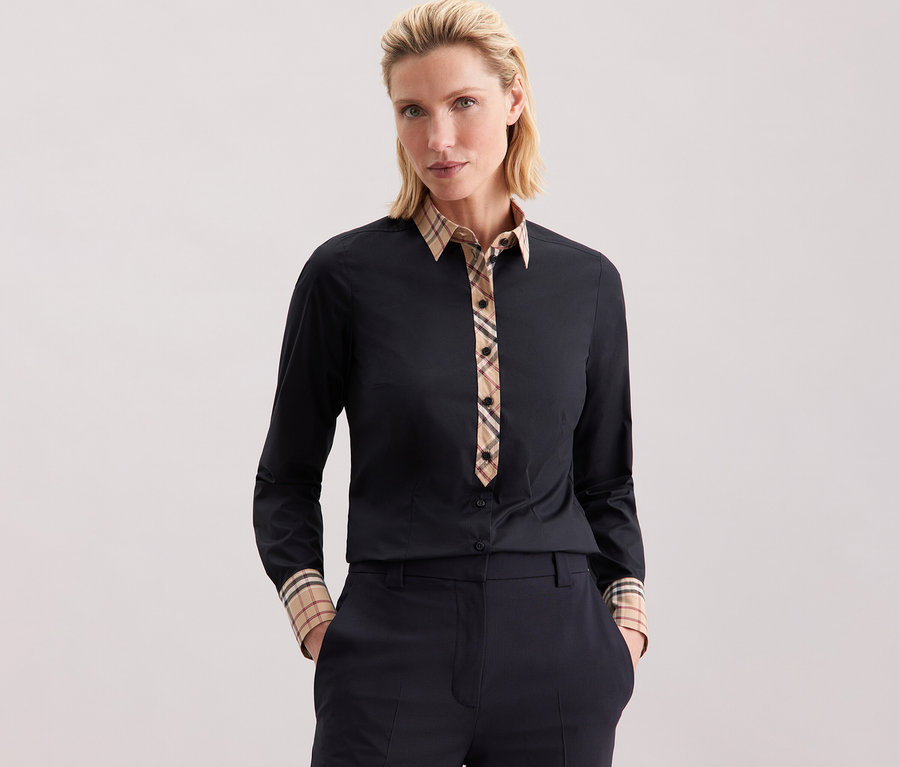 Popelínová halenka s kostkovaným detailem Seidensticker