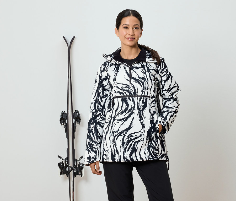 Lyžařská bunda s polovičním zipem, černá/bílá