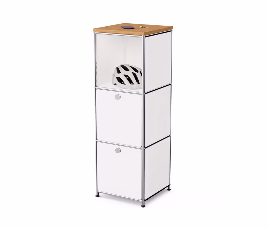 Úzká kovová komoda »CN3« s dřevěnou deskou a 2 výklopnými dvířky, bílá