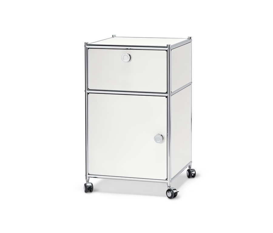 Kontejner na kolečkách »CN3« se zásuvkou a dvířky, bílá