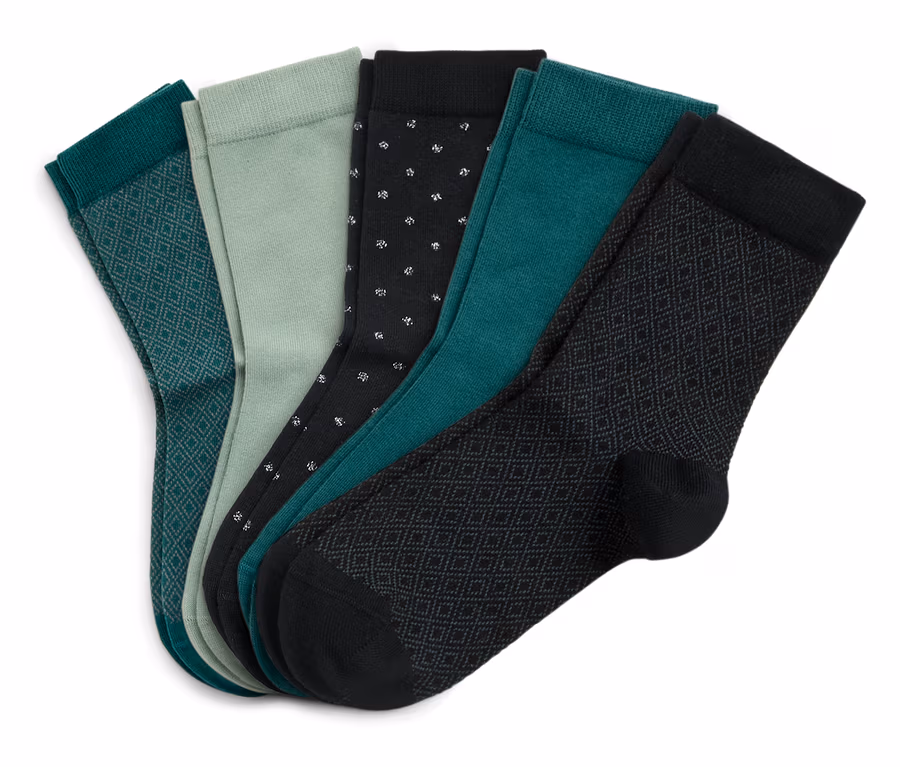 1x petrolejová s celoplošným vypleteným kosočtvercovým vzorem, 1x šalvějová, 1x černá s třpytivými puntíky, 1x petrolejová, 1x černá s celoplošným vypleteným kosočtvercovým vzorem