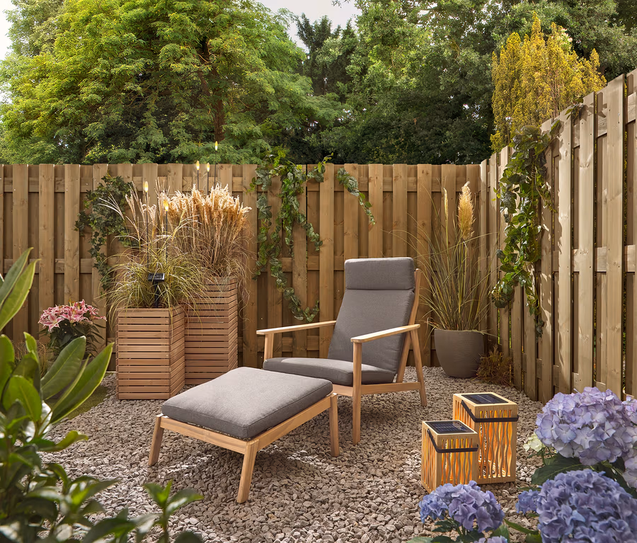 Pohodlné zahradní křeslo s vysokým opěradlem včetně podnožky