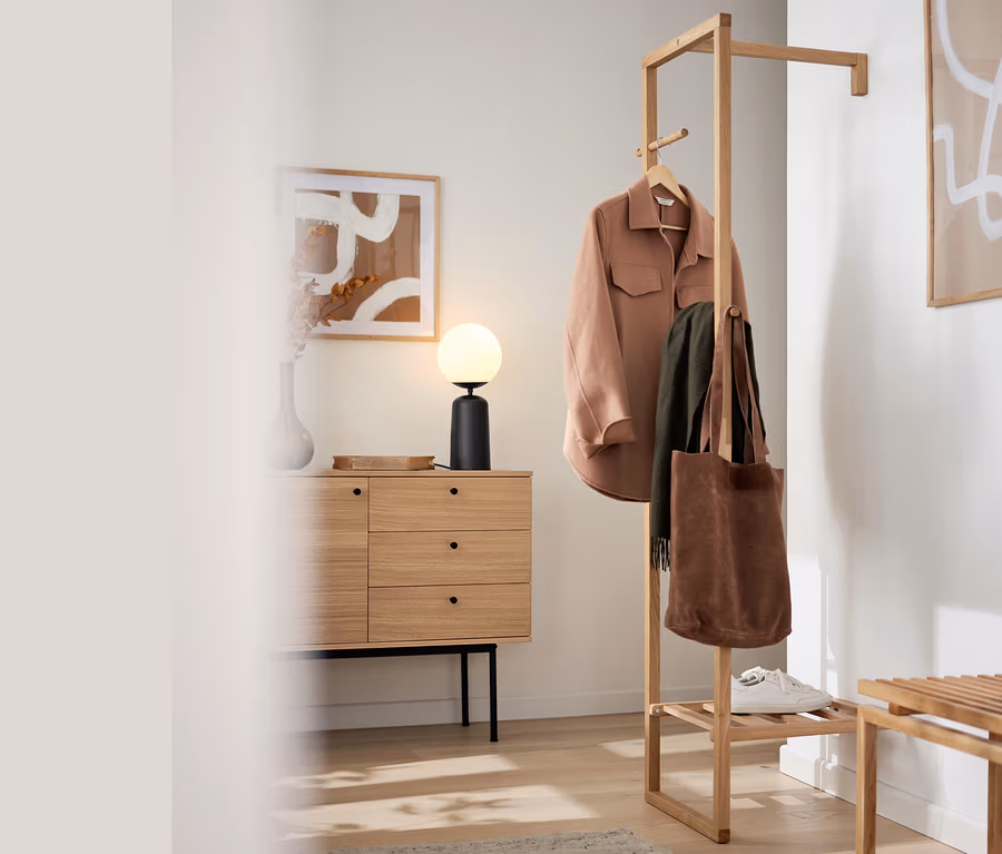 • Věšák na šaty z masivního dubového dřeva s certifikací FSC®