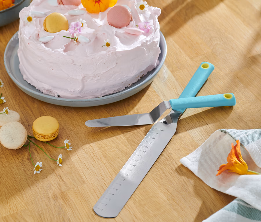 • Velký roztírací nůž na rovnoměrné zdobení dortů – se stupnicí