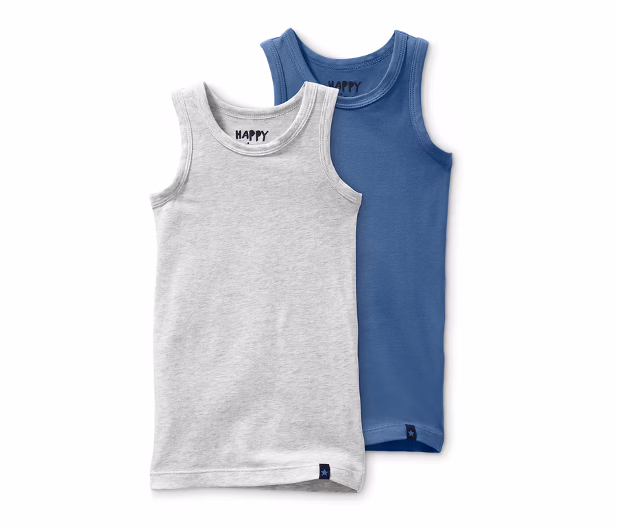 Hledáte vhodné spodní prádlo na dovádění a spánek? To je přece hračka! Oba tyto nátělníky z jemně žebrované pleteniny díky elastickému žebrovanému materiálu optimálně sedí. Jsou opatřené elastickým výstřihem u krku, takže se přizpůsobí každému pohybu. Nátělníky jsou perfektní volbou pro kluky i holky, protože se díky čisté bavlně příjemné na tělo výborně nosí.