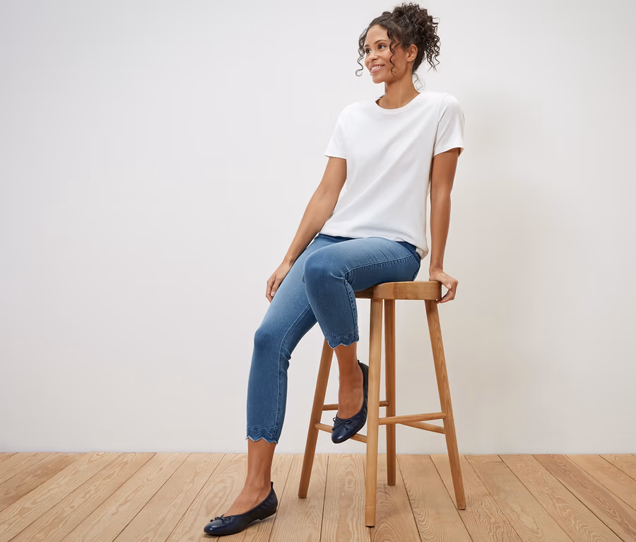 • Konce nohavic s vlnkovaným lemem a ažurovou výšivkou
