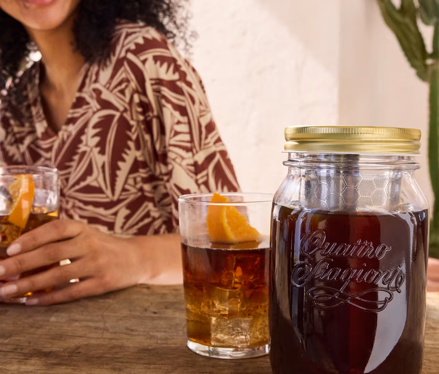 Sklenice Quattro Stagione je osvědčenou klasikou italské výroby. Díky silikonovému kroužku láhev vzduchotěsně uzavře – i s vloženým filtrem. Cold brew tedy zůstane dlouho čerstvý a lze ho dobře uchovávat. Všechny díly se snadno čistí a jsou vhodné do myčky.
