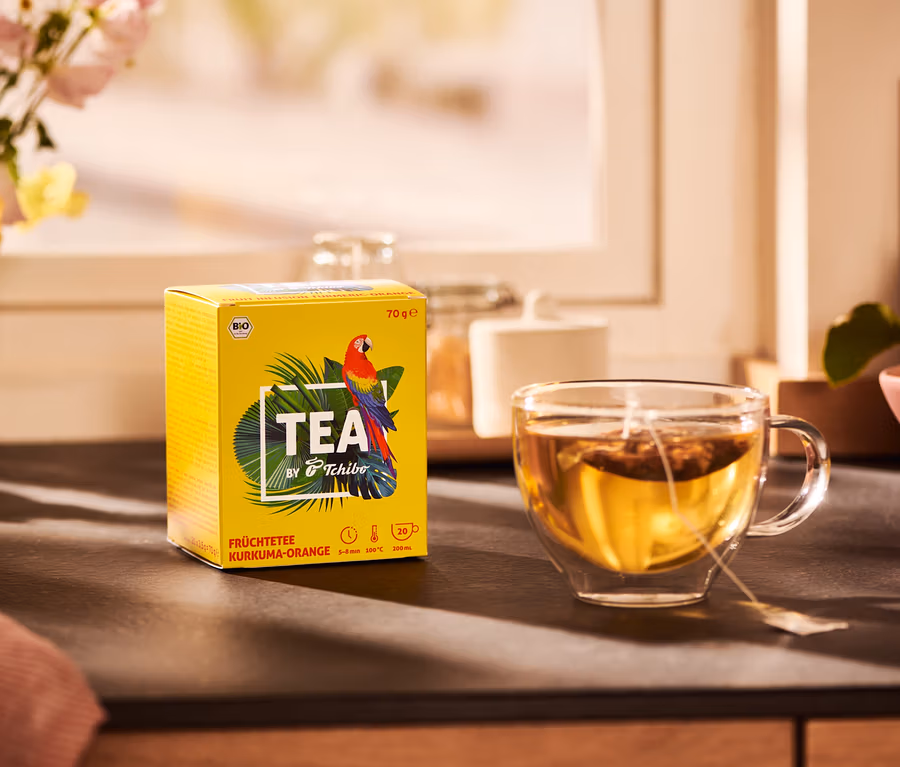 Bio aromatizovaný ovocný čaj TEA by Tchibo s příchutí kurkuma/pomeranč - 8 × 20